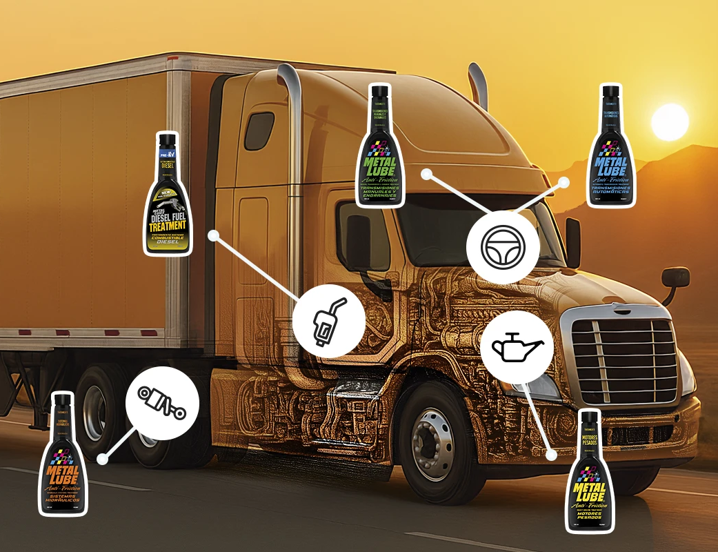 Los vehículos industriales y de transporte trabajan bajo condiciones extremas. Por eso, en Metal Lube hemos desarrollado accesorios para camiones pensados para proteger y optimizar el rendimiento de motores diésel de gran tamaño, transmisiones, diferenciales y sistemas hidráulicos.
